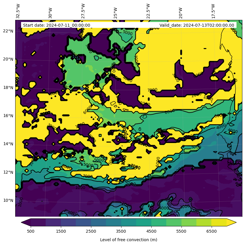 - Level of free convection (m)