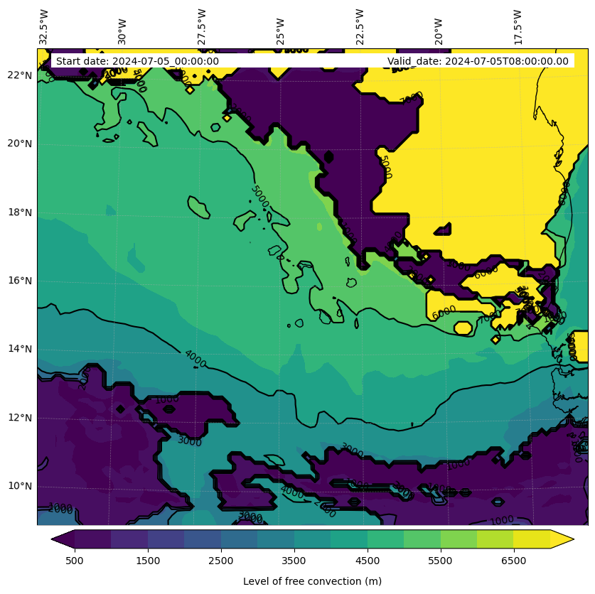 - Level of free convection (m)