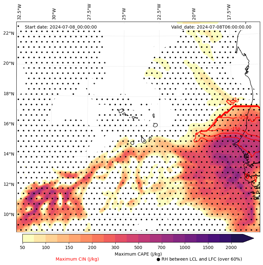 • Maximum CAPE (J/Kg)