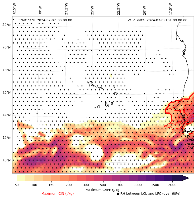 • Maximum CAPE (J/Kg)
