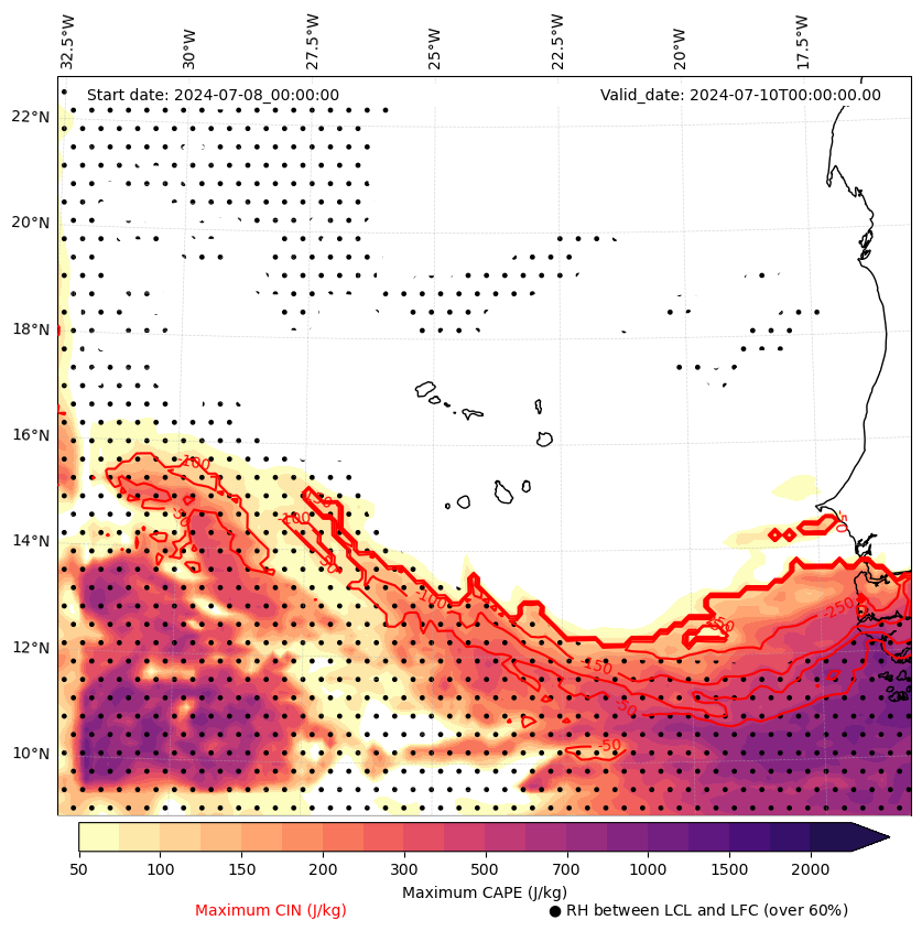 • Maximum CAPE (J/Kg)