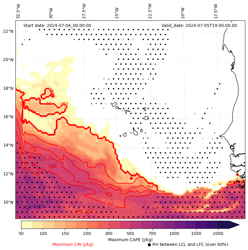 • Maximum CAPE (J/Kg)