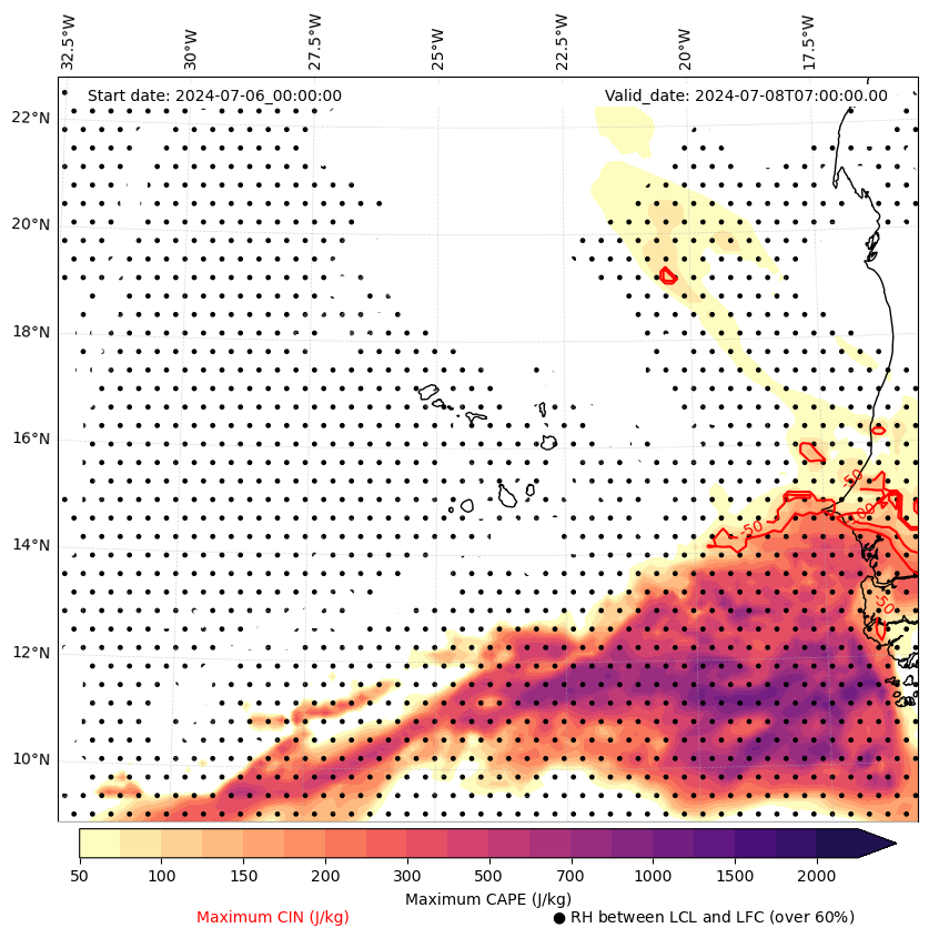 • Maximum CAPE (J/Kg)