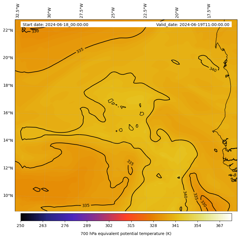 - Equivalent Potential Temperature (K)