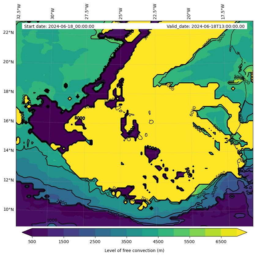- Level of free convection (m)