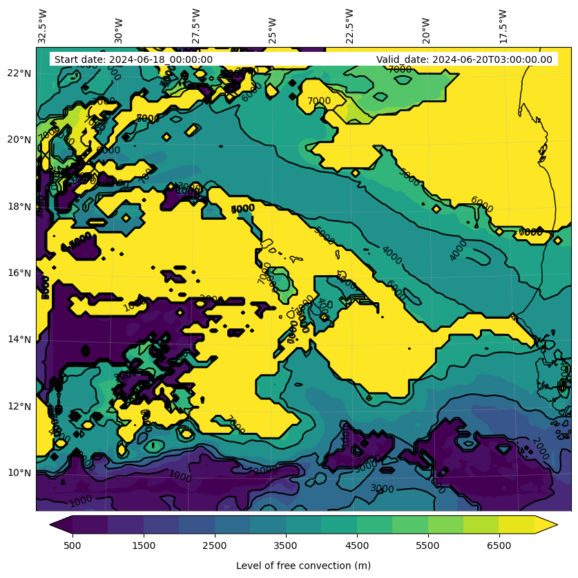 - Level of free convection (m)