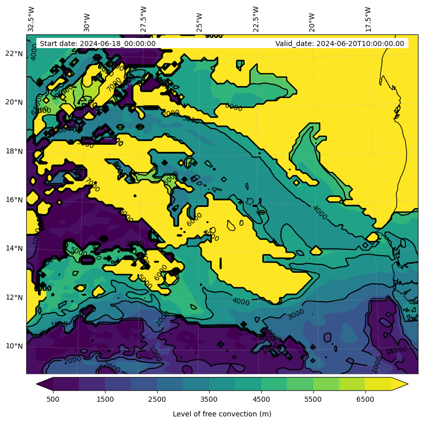 - Level of free convection (m)