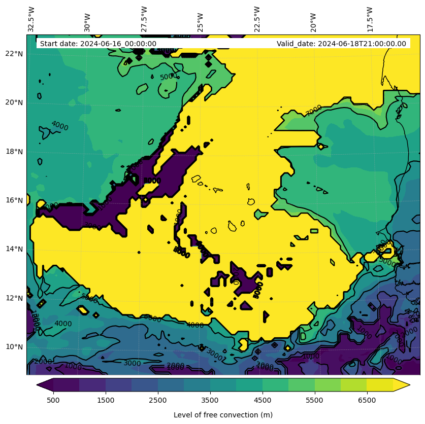 • Level of free convection (m)