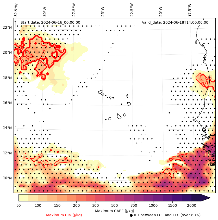 • Maximum CAPE (J/Kg)