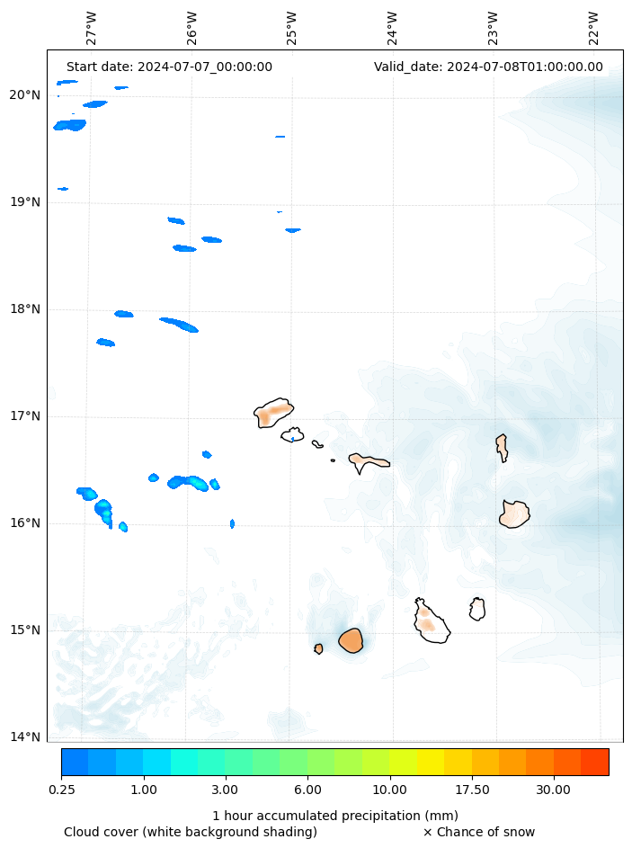 - Snow mixing ratio (g kg¯¹)
