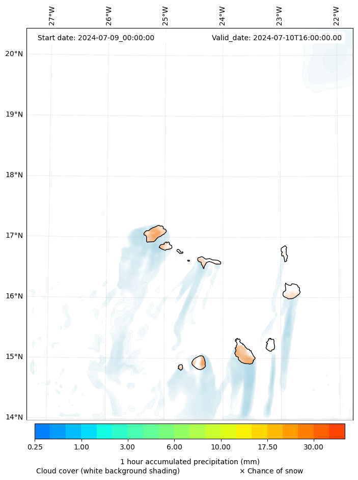 - Snow mixing ratio (g kg¯¹)