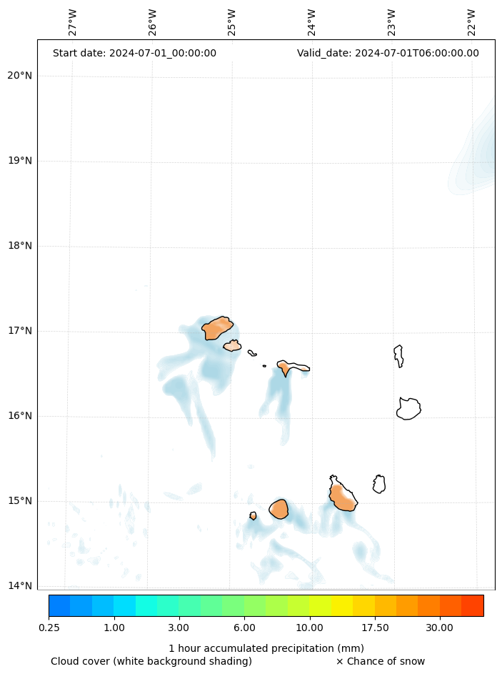 - Snow mixing ratio (g kg¯¹)