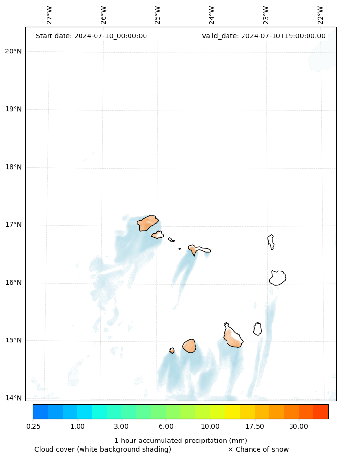 - Snow mixing ratio (g kg¯¹)