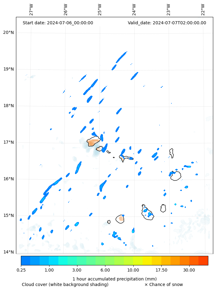 - Snow mixing ratio (g kg¯¹)
