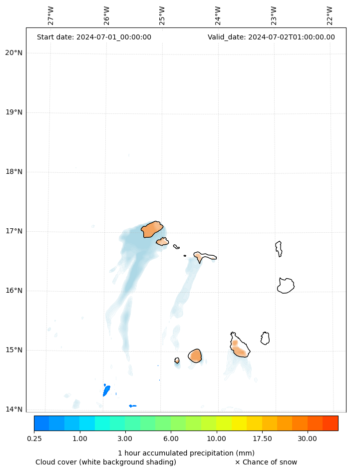 - Snow mixing ratio (g kg¯¹)