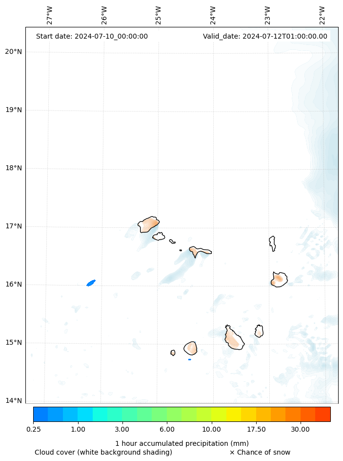 - Snow mixing ratio (g kg¯¹)