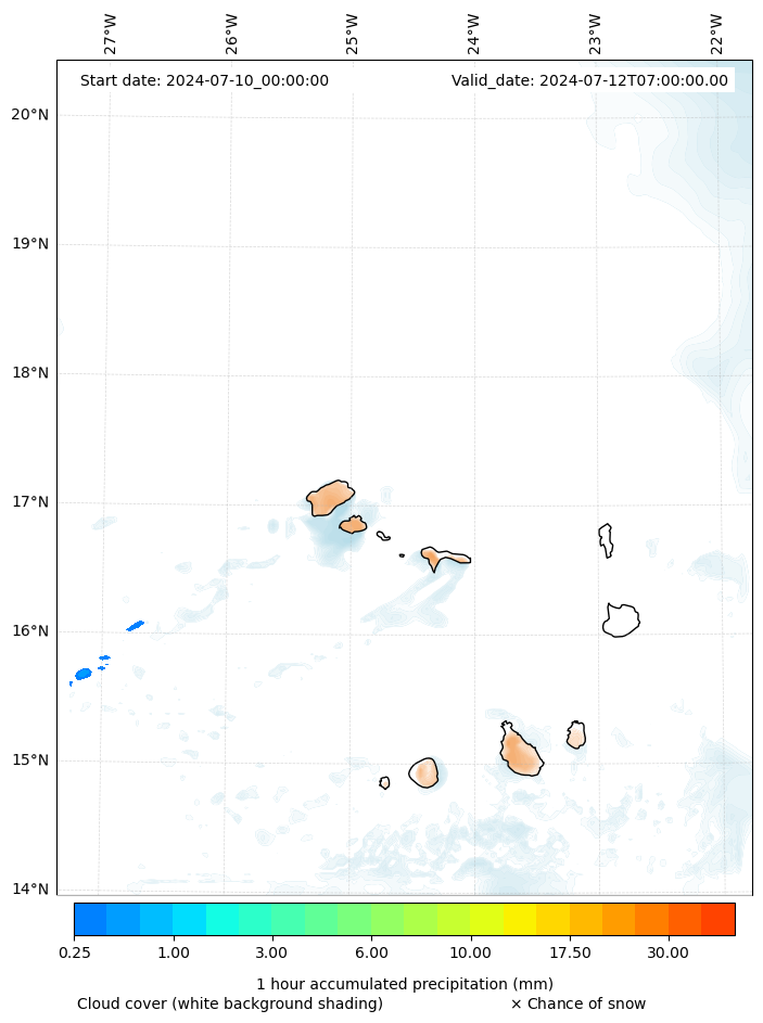 - Snow mixing ratio (g kg¯¹)