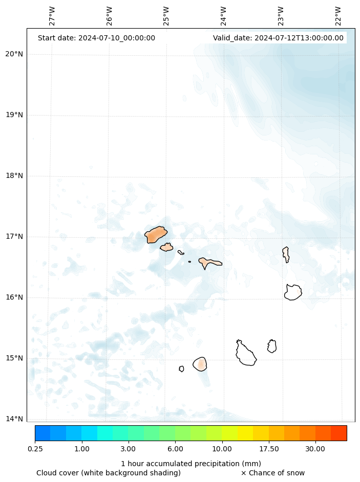 - Snow mixing ratio (g kg¯¹)