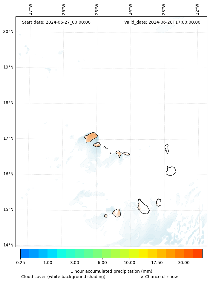 - Snow mixing ratio (g kg¯¹)