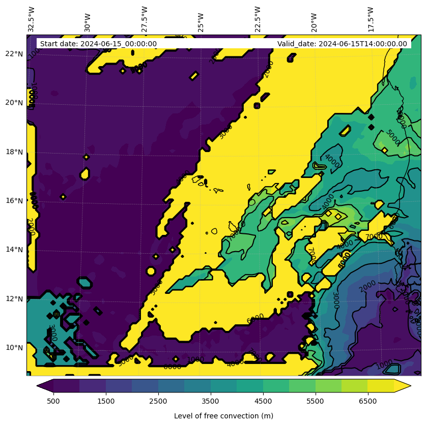 - Level of free convection (m)