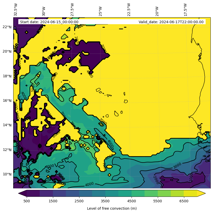 - Level of free convection (m)