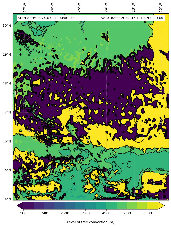 - Level of free convection (m)