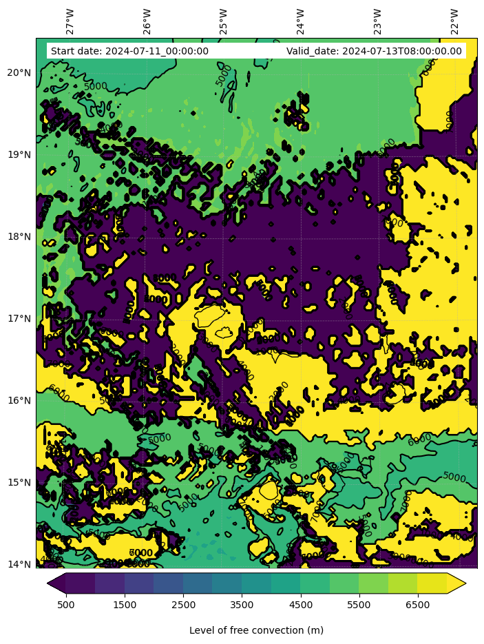 - Level of free convection (m)