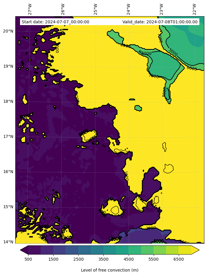 - Level of free convection (m)