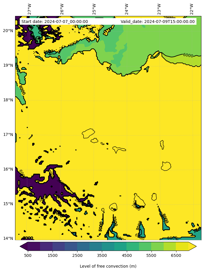 • Level of free convection (m)