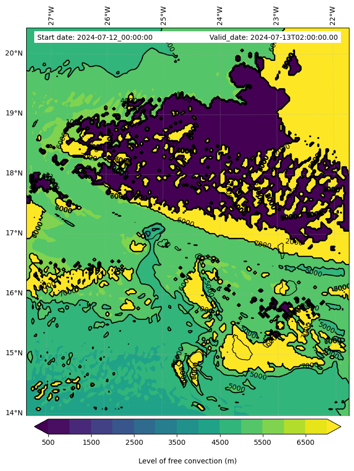 - Level of free convection (m)