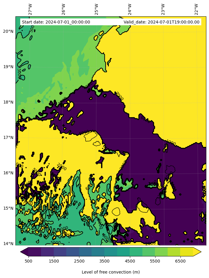 - Level of free convection (m)