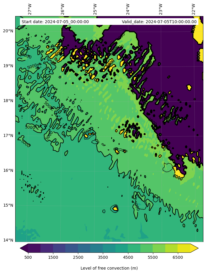 - Level of free convection (m)