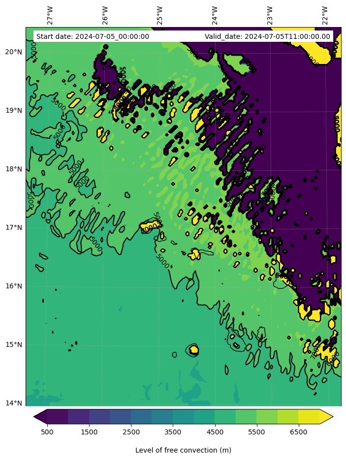 • Level of free convection (m)
