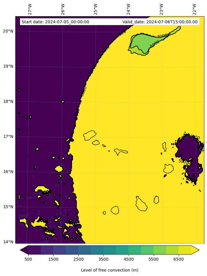 - Level of free convection (m)