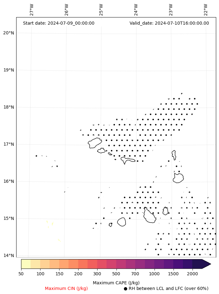 • Maximum CAPE (J/Kg)