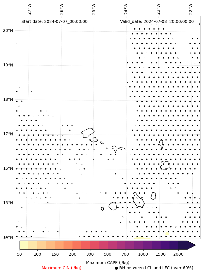 • Maximum CAPE (J/Kg)