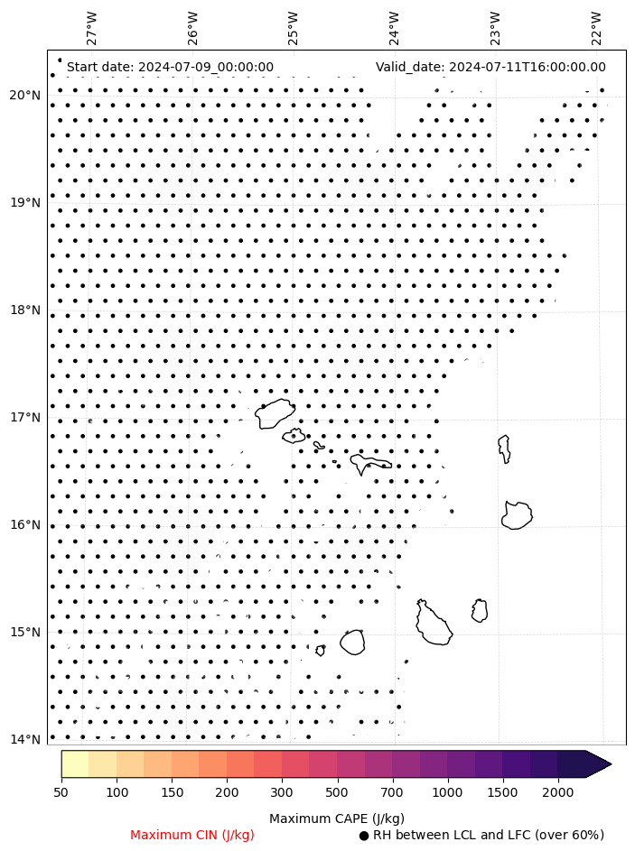 • Maximum CAPE (J/Kg)
