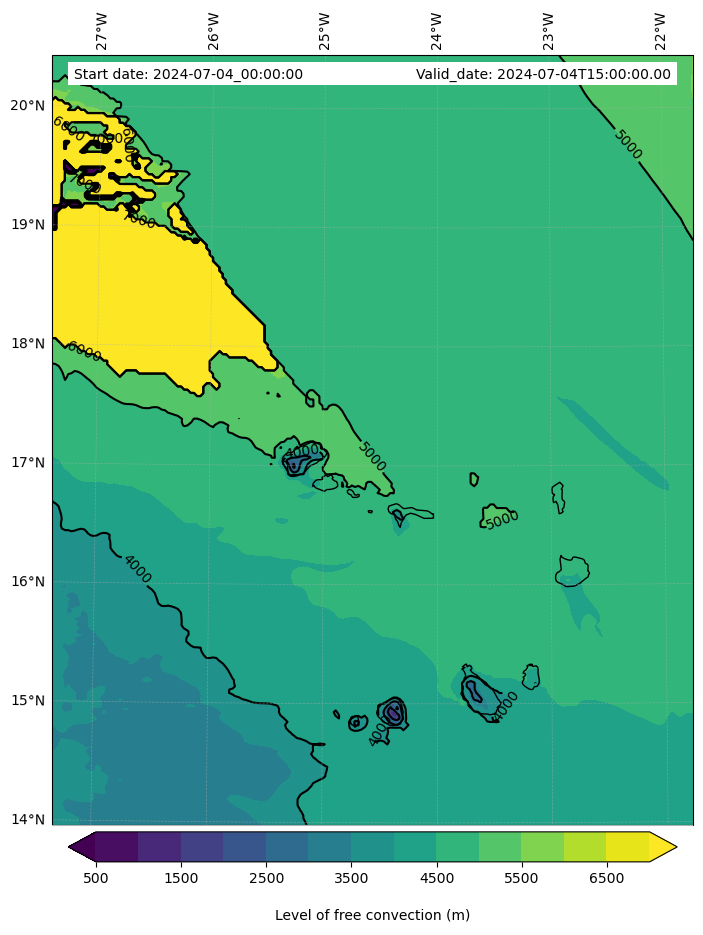 • Level of free convection (m)