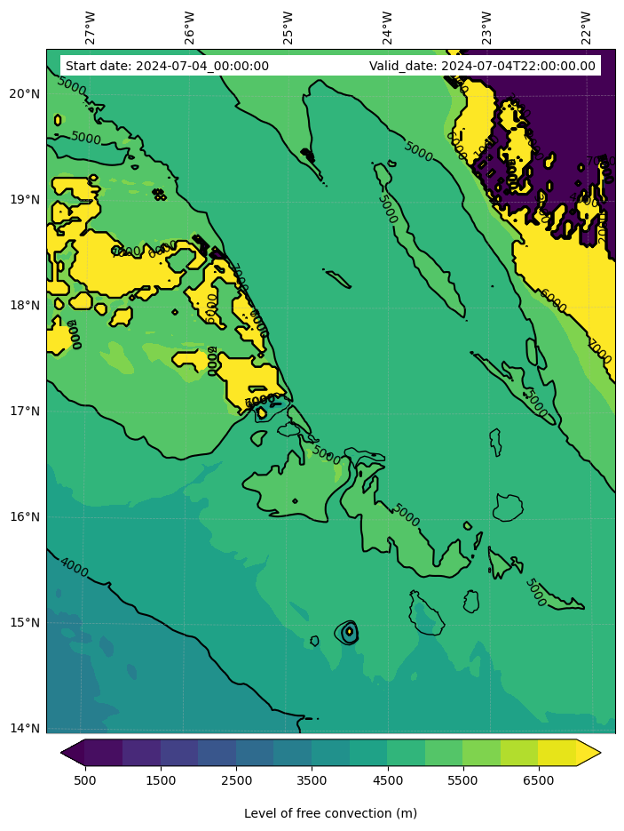 - Level of free convection (m)