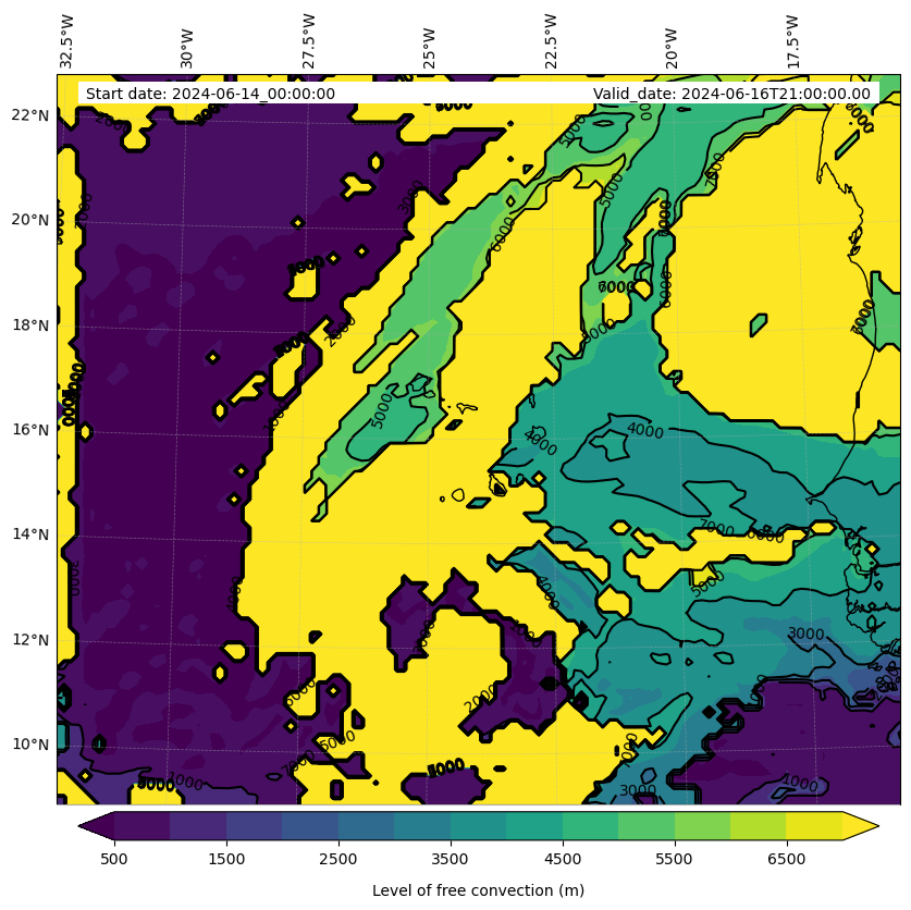 - Level of free convection (m)