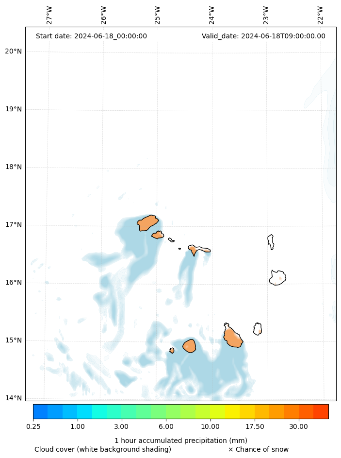 - Snow mixing ratio (g kg¯¹)