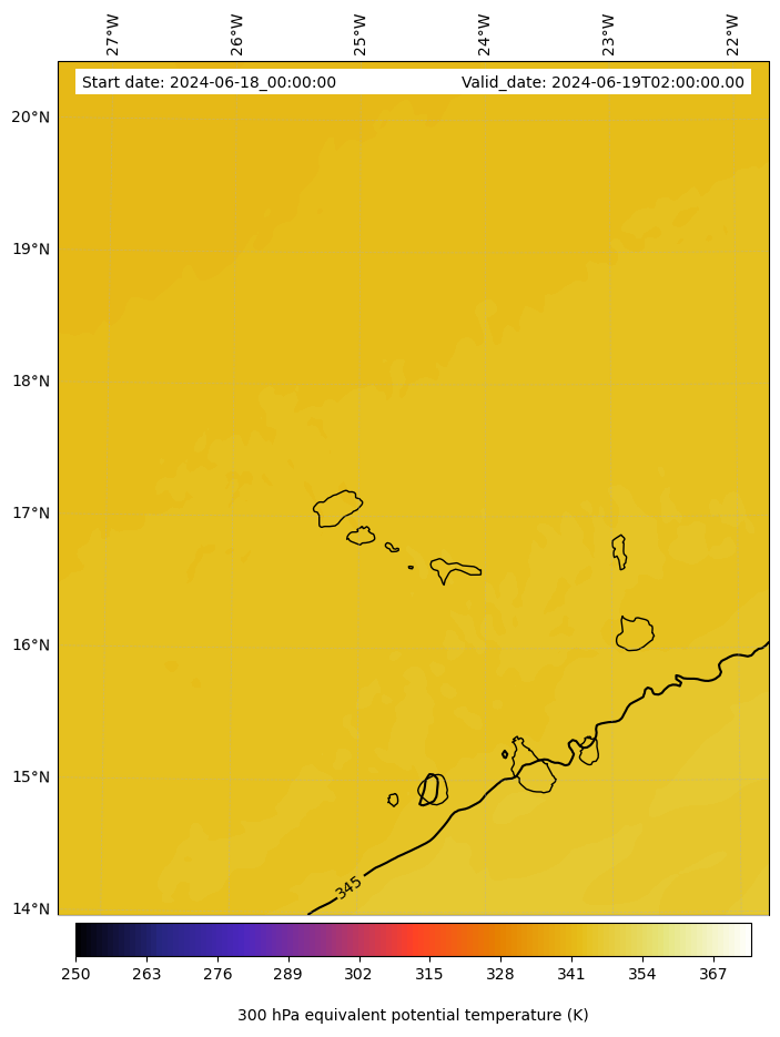 - Equivalent Potential Temperature (K)- 300 hPa