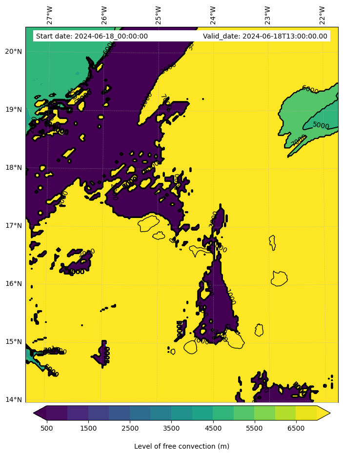 - Level of free convection (m)
