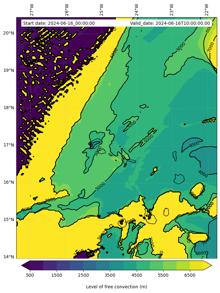 • Level of free convection (m)