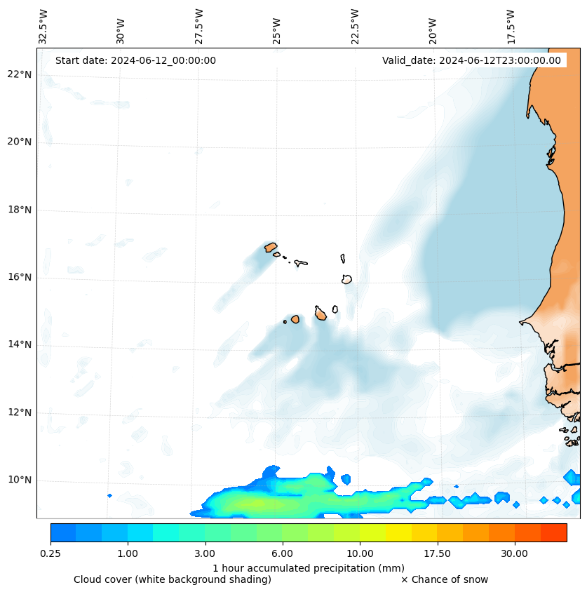 - Snow mixing ratio (g kg¯¹)