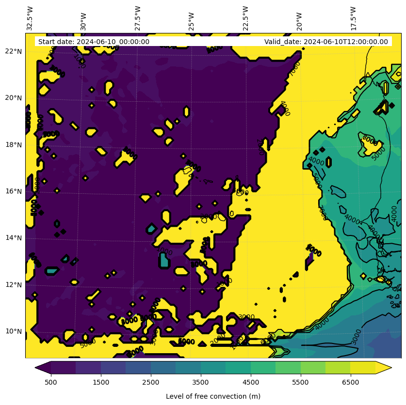 - Level of free convection (m)