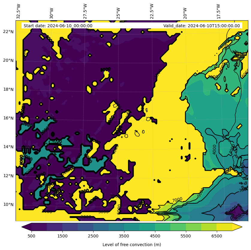 - Level of free convection (m)