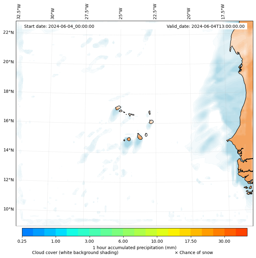 - Snow mixing ratio (g kg¯¹)