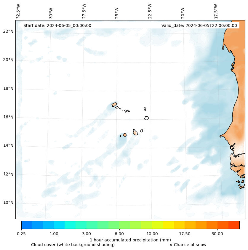 - Snow mixing ratio (g kg¯¹)