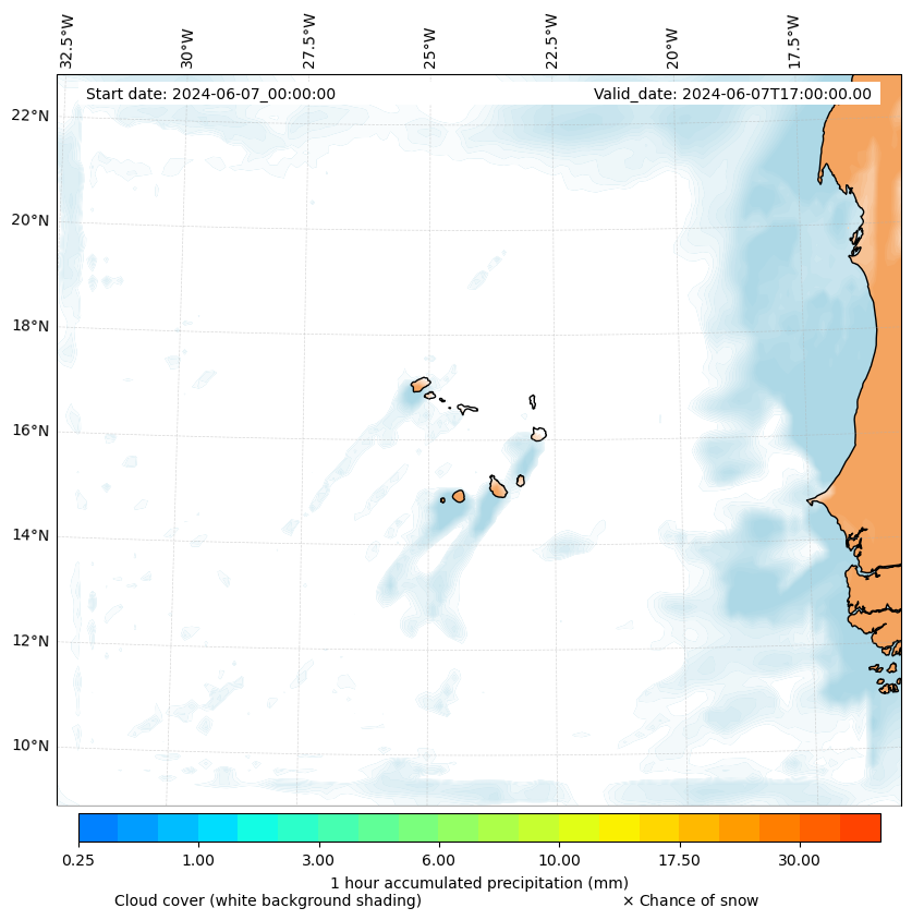 - Snow mixing ratio (g kg¯¹)